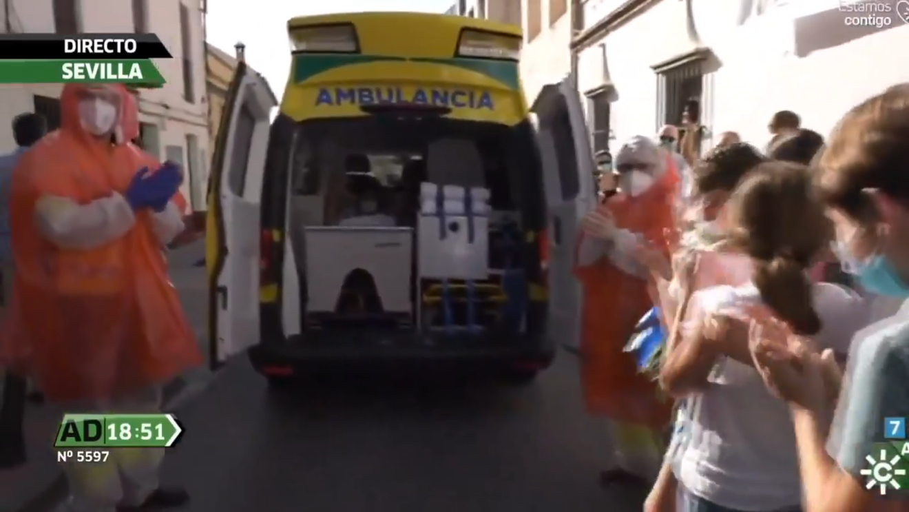 Lo recogía Andalucía Directo. Tras largas semanas en el Hospital de Valme peleando por superar el coronavirus, esta alcalareña ha recibido hoy en su calle una calurosa bienvenida por parte de sus vecinos y familiares, que han aplaudido a la llegada de la ambulancia.