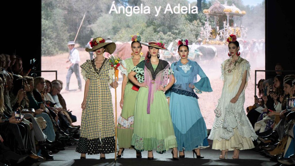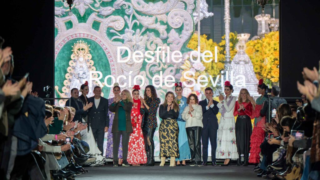 El desfile a beneficio de la Hermandad del Rocío de Huelva contó con creaciones de Pedro Béjar, Santana, Juan Boleco, Manuela Macías, ARCOS, Paco Prieto, Pepe Jiménez y José Valencia. Los fondos recaudados se destinarán al Centro de Equinoterapia de la finca Valcasado, donde la Hermandad desarrolla labores asistenciales.