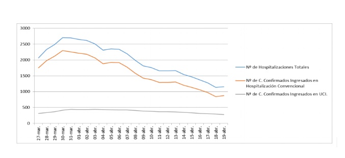 Según el Ministerio de Sanidad, hay 49 ingresos hospitalarios más que este domingo, de los cuales solo 3 han requerido su ingreso en UCI. Los curados crecen en 113 personas hasta los 3.229. Eso significa que la comunidad tiene más del doble de curados diarios que de ingresados. En total hay 5.473 personas que precisado hospitalización y 690 que han necesitado el ingreso en UCI.