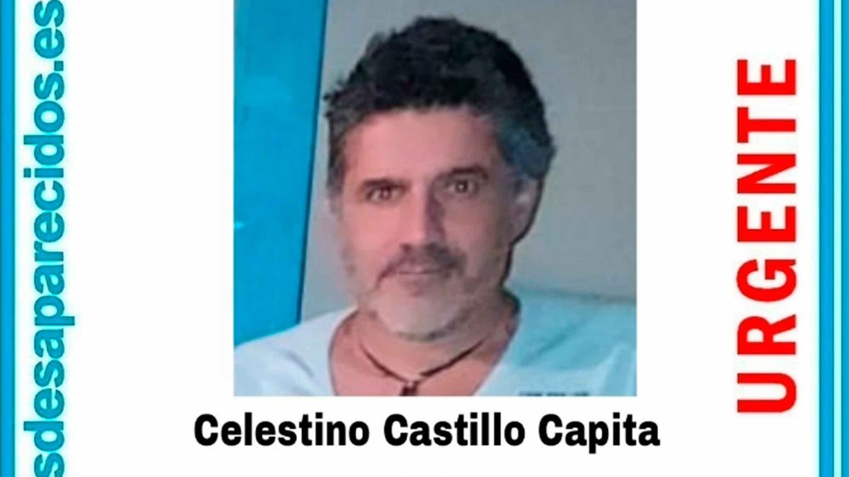 La asociación SOS Desaparecidos ha informado este miércoles de la desaparición de Celestino Castillo Capita en Alcalá. La última vez que se le vio fue el pasado 11 de julio. El desaparecido tiene 48 años de edad, mide 1,68 metros y es de complexión gruesa. Tiene tanto el pelo como los ojos de color castaño y tiene un tatuaje en el brazo y en la espalda.