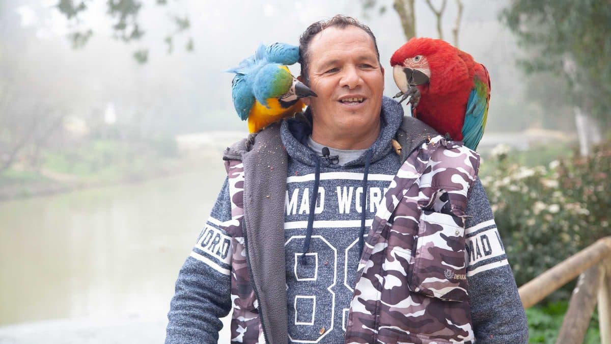 Todos los días, desde hace ya dos años, sobre las 10:00 horas, Miguel Astasio acude frente al Molino de San Juan, en el parque de Oromana (Alcalá de Guadaíra), con sus dos loros, Dana y Siro. En el camino de albero, se cruza con deportistas, padres que pasean con sus hijos, fotógrafos empeñados en captar la naturaleza salvaje del entorno y curiosos que vienen porque saben que él estará allí.