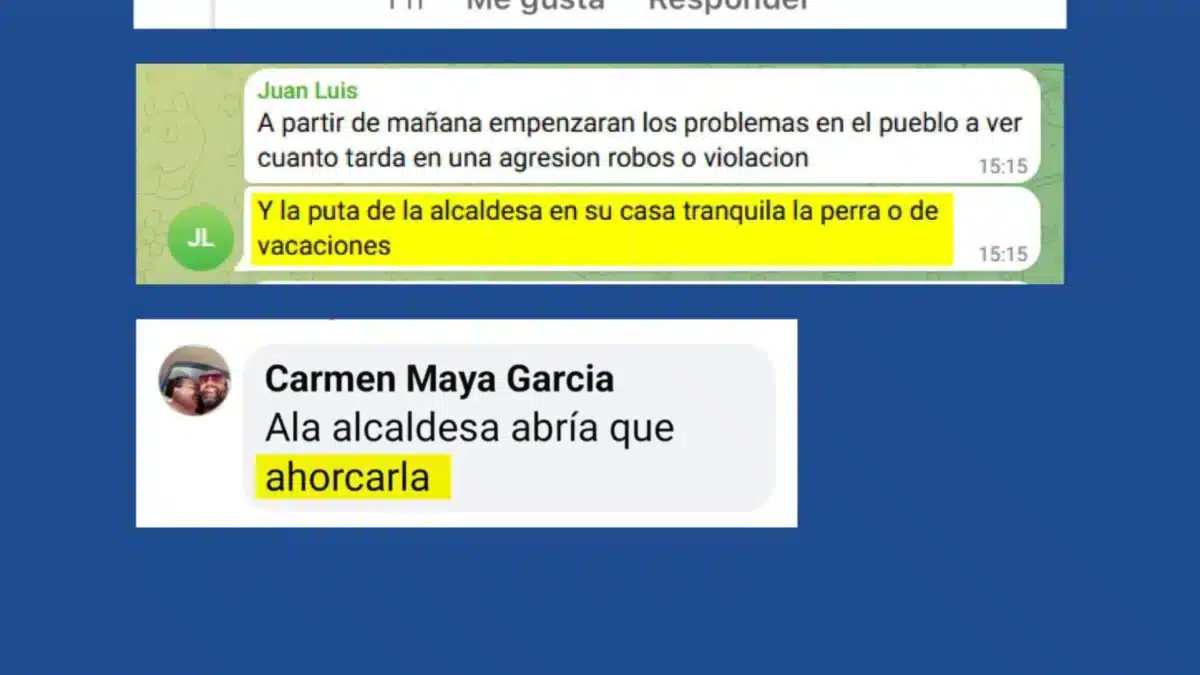 Otros directamente son amenazas de muerte e insultos vejatorios: «Y la puta de la alcaldesa en su casa tranquila la perra o de vacaciones». «A la alcaldesa habría que ahorcarla» escribe otra persona en comentarios de Facebook.