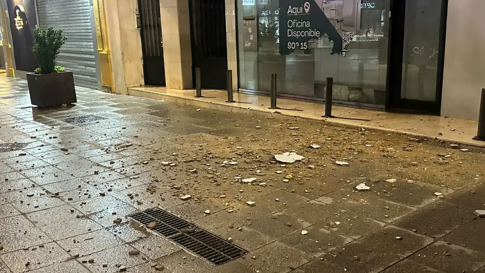 Cascotes de la cornisa caída en La Plazuela. LVA
