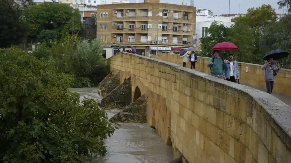 El desbordamiento del río implicará el corte de la carretera en ese punto. Cuando desborda en la Vega, la zona más crítica es el Puente Romano. Aquí no se ha desplegado ningún dispositivo por el momento.