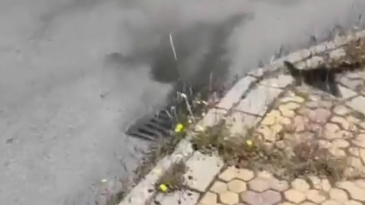 Sale humo negro de las alcantarillas del Polígono La Red de Alcalá de Guadaíra, dónde este miércoles se ha originado un importante incendio en la fábrica de productos químicos Painsur. Este fenómeno se está produciendo debido a la gravedad del incidente, que ha movilizado a bomberos de ocho municipios distintos.