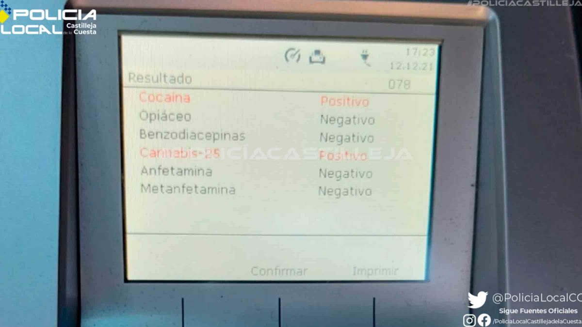 Además de dar positivo en las pruebas, el conductor interceptado portaba tales sustancias en el momento del alto de los agentes, según ha informado la Policía Local de Castilleja de la Cuesta.