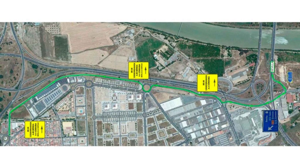 Para la señalización del nuevo itinerario es necesaria la colocación de un nuevo pórtico de señalización vertical de 38 m de luz, con apoyos exteriores a ambas calzadas de la autovía A-49, para lo que se requiere el corte total de la autovía A-49.