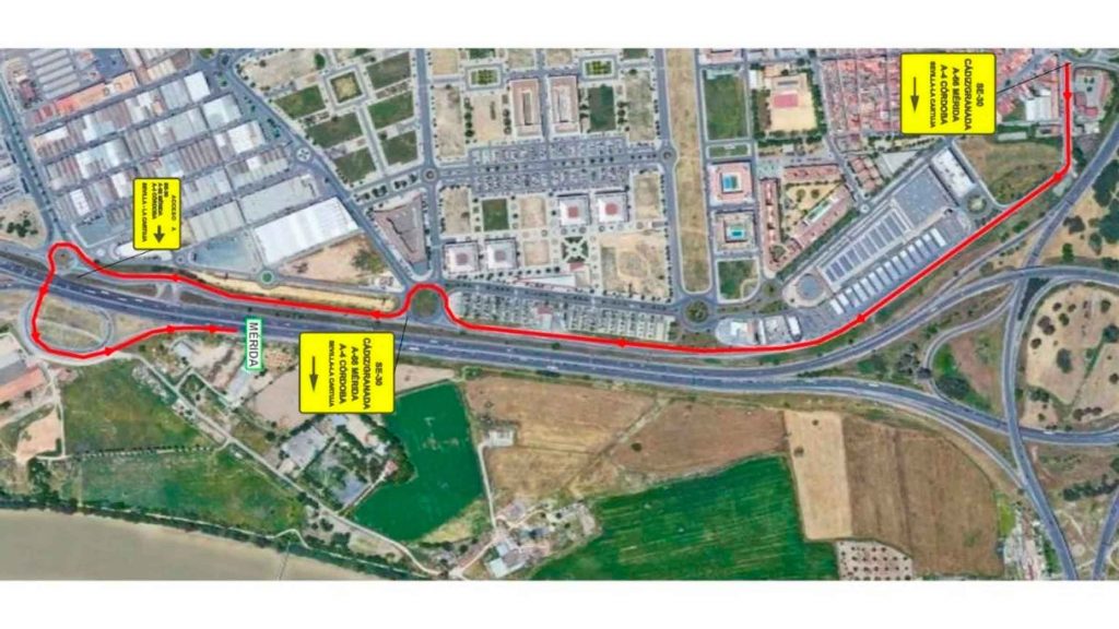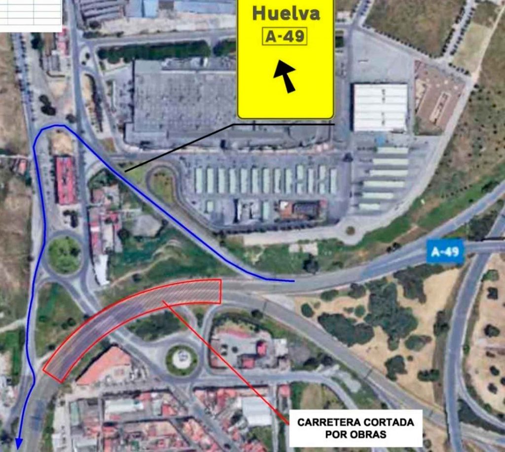 El tráfico se desviará por la salida 1 Camas/Olives, hacia la Avenida Primero de Mayo del municipio de Camas hasta la glorieta que da acceso al ramal de incorporación a dicha autovía A-49 sentido Huelva. En este itinerario alternativo existen de dos cruces semaforizados.