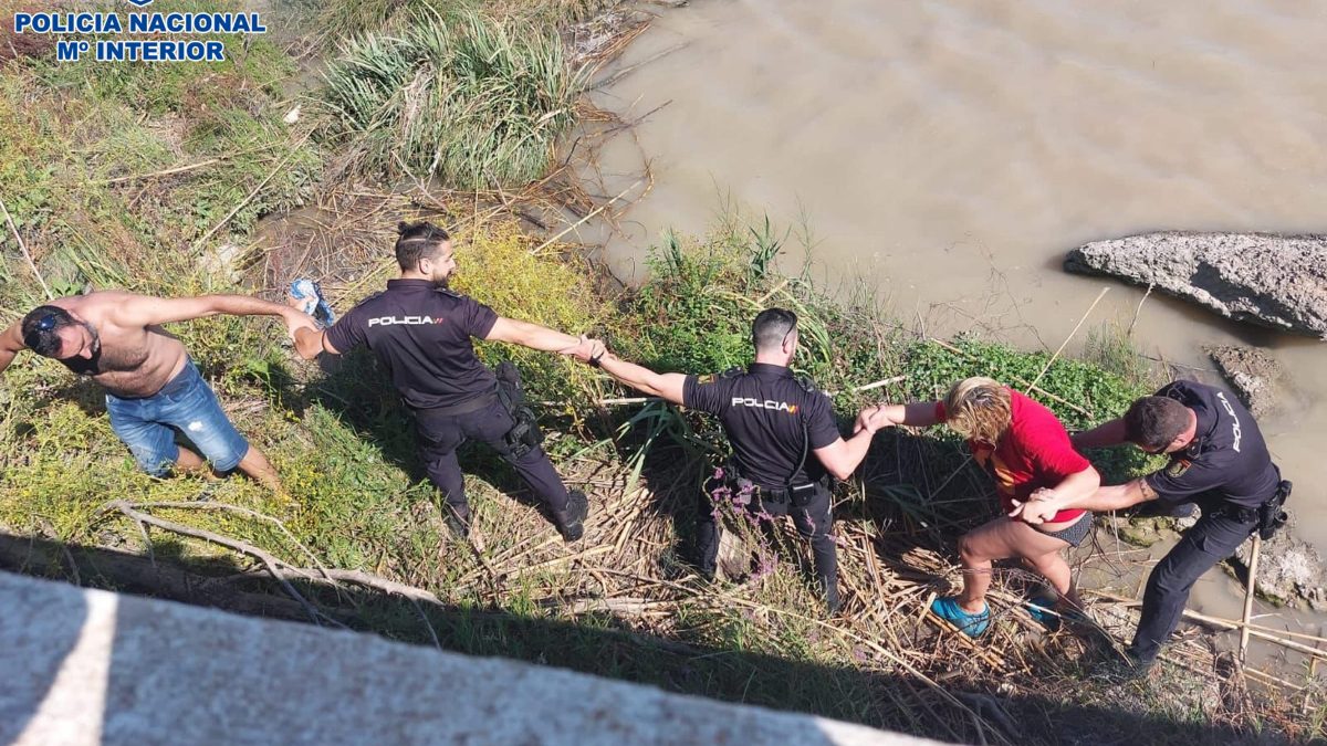 Los agentes accedieron al punto exacto y con rapidez aseguraron al hombre y lograron sacar a la mujer con una cadena humana. La mujer de 45 años fue asistida por los servicios médicos desplazados al lugar.