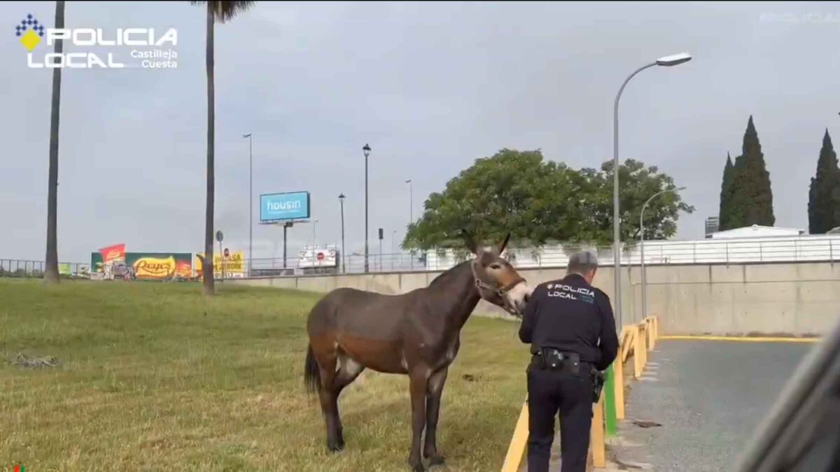Un burro que se había escapado de la Feria de Sevilla llegó este miércoles hasta el municipio de Castilleja de la Cuesta, donde fue localizado por la Policía Local tras causar cierta alarma al circular por zonas de tránsito rodado.