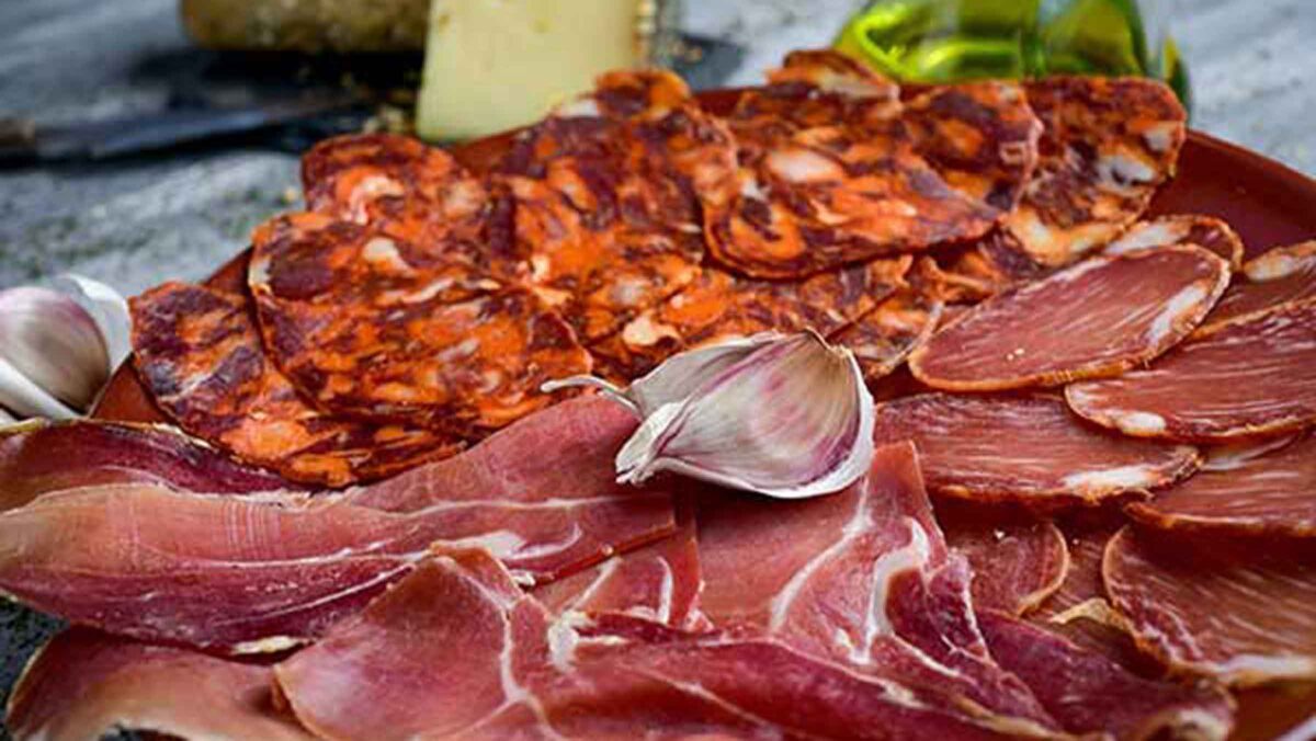 Jamones, paletillas, chacinas, quesos y patés locales.