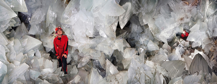 Con forma de embudo, ocupa una cavidad de 8 metros de largo, por 1,8 de ancho y 1,7 de alto, y está situada a unos 60 metros de profundidad, coincidiendo con el nivel del mar. La transparencia, dimensiones, perfección y tamaño de sus cristales, de hasta 2 metros de largo, la convierten en un fenómeno único a nivel mundial.