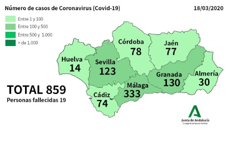 La Consejería de Salud y Familias ha informado en un comunicado que se han confirmado en Andalucía 176 nuevos casos de Coronavirus en las últimas horas. Así, el número total de afectados en Andalucía asciende a 859.