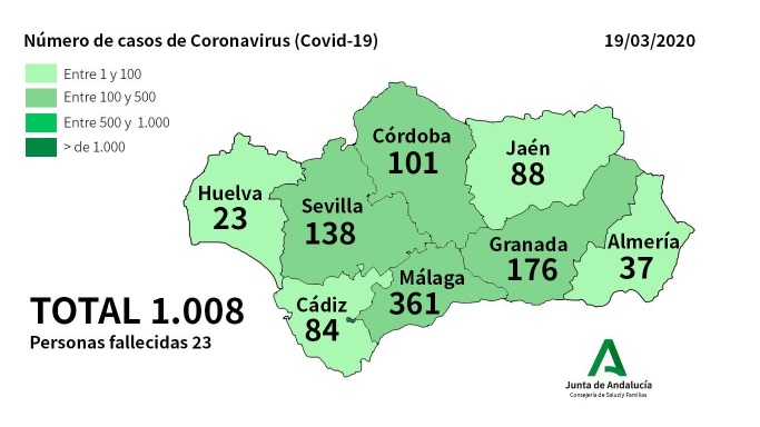 La Consejería de Salud y Familias informa que se han confirmado en Andalucía 149 nuevos casos de Coronavirus en las últimas horas. Así, el número total de afectados en Andalucía asciende a 1008.