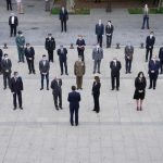 El Gobierno andaluz, ha protagonizado un minuto de silencio en el Palacio de San Telmo por las víctimas del coronavirus en Andalucía. «Hoy iniciamos una semana de luto oficial para rendir homenaje a las víctimas y a sus familias. Tienen el apoyo y el cariño de todos», ha declarado el presidente la Junta, Juanma Moreno. Juanma Moreno ha estado acompañado de los consejeros del Gobierno.