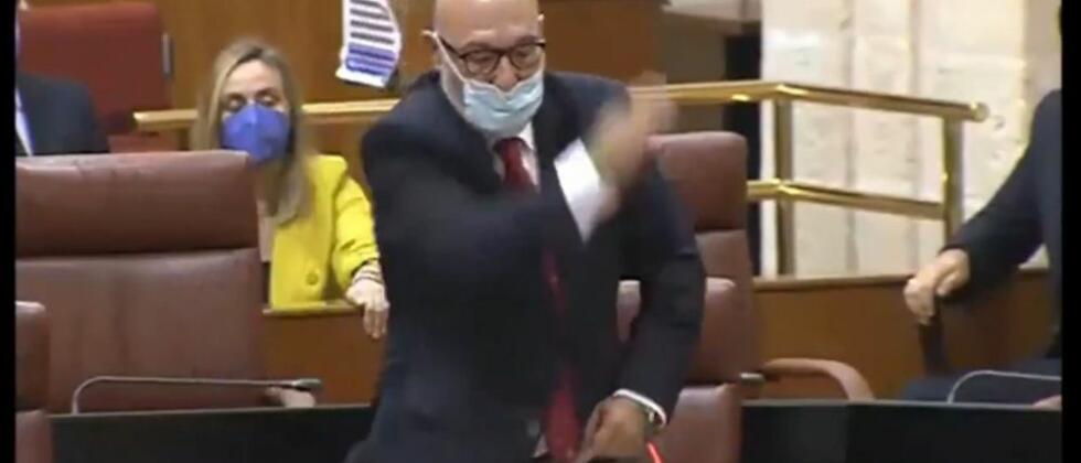 El portavoz andaluz de Vox, Alejandro Hernández, ha protagonizado unos momentos de trensión en el Parlamento de Andalucía.