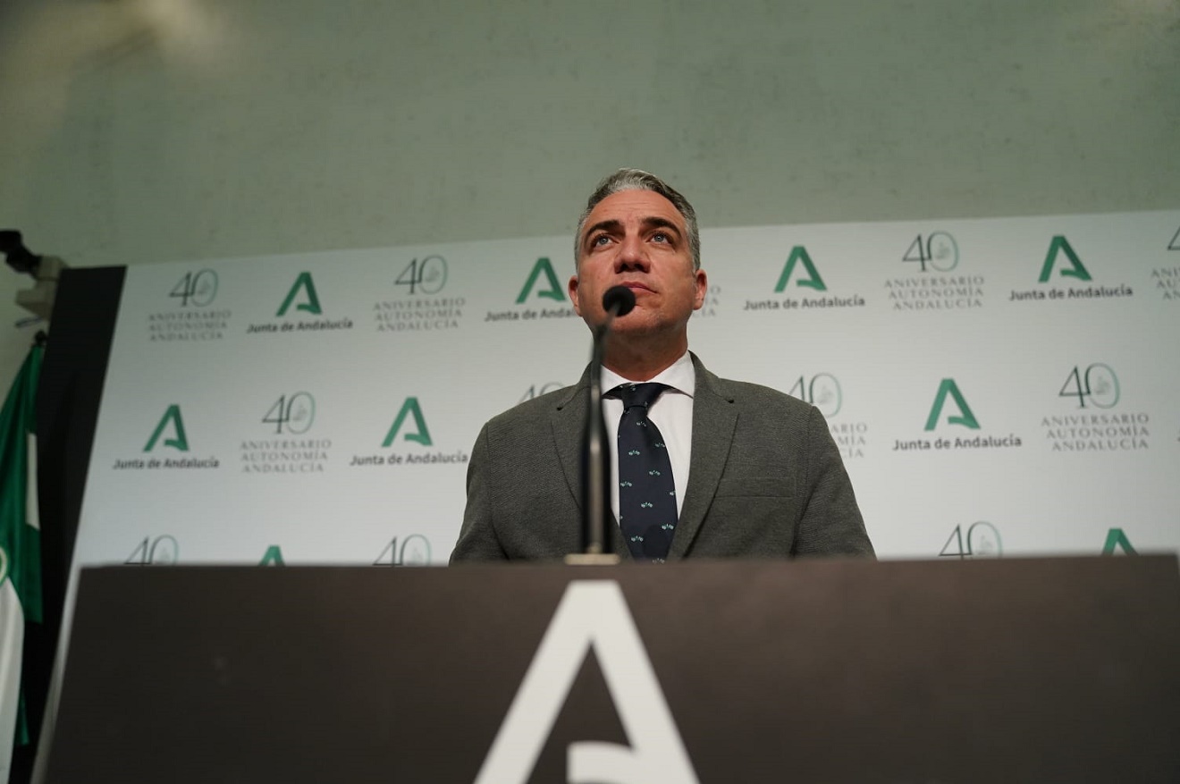 El consejero de Presidencia y portavoz de la Junta de Andalucía, Elías Bendodo, hacía referencia a la celebración de oposiciones de los cuerpos C1 Y C2 a administrativo y auxiliar administrativo de la Junta de Andalucía.
