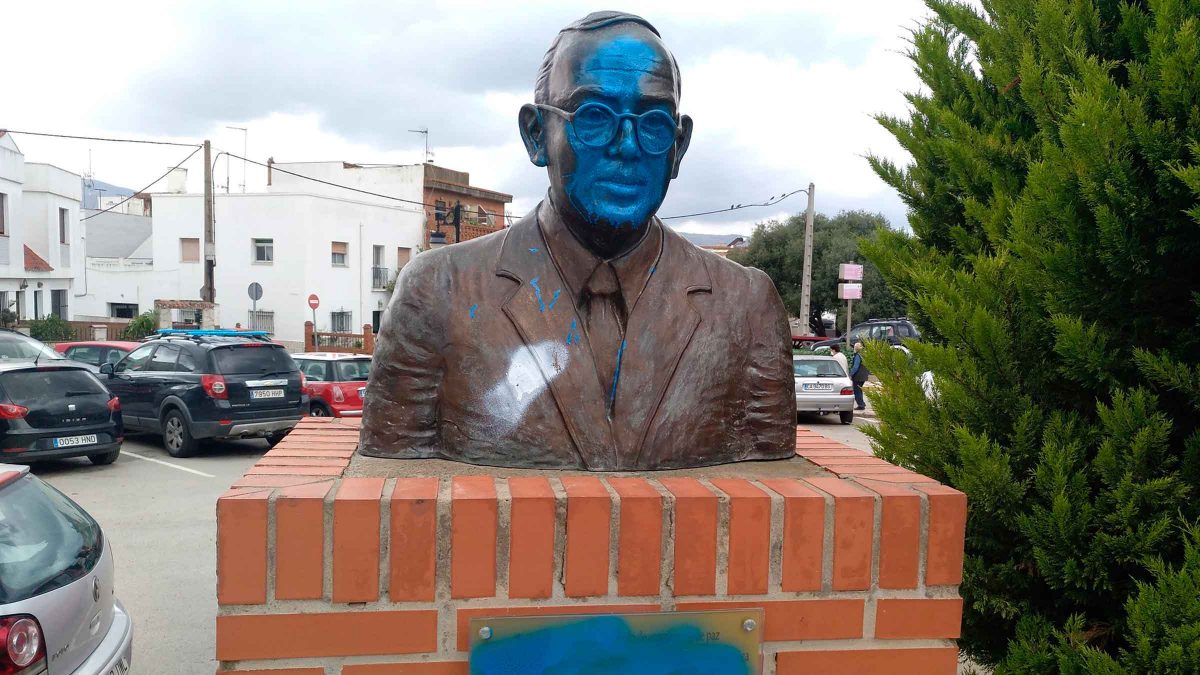 El busto de Blas Infante situado en la localidad gaditana de Los Barrios ha sido vandalizado, con pintadas en la efigie del padre de la patria andaluza. Una capa de color azul tiñe la faz de este busto de Blas Infante situado en la plaza de la patria andaluza de la localidad.