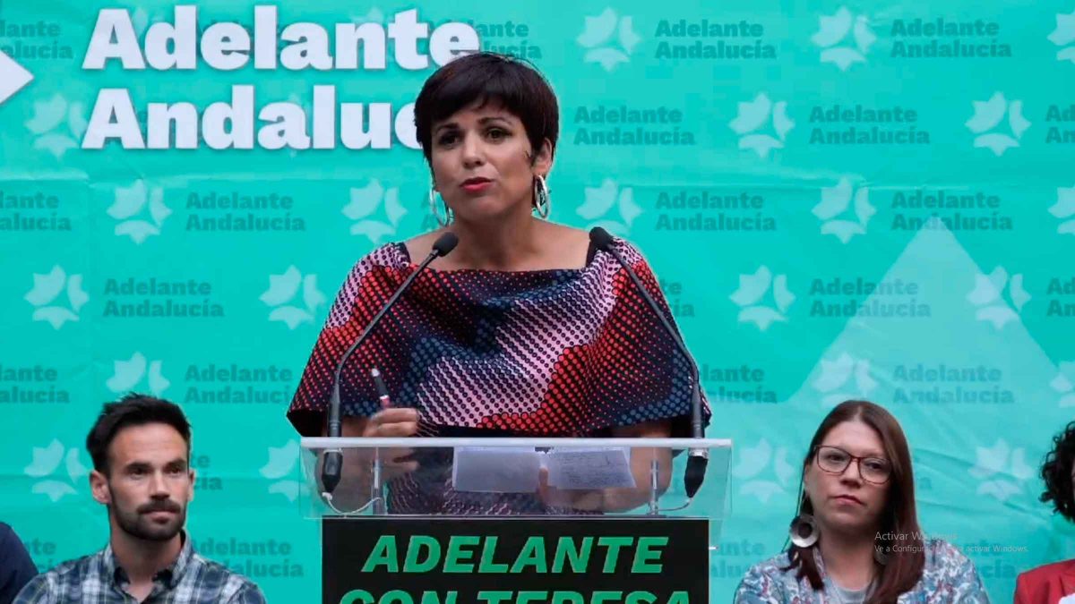 Teresa Rodríguez, candidata de Adelante Andalucía a la presidencia de la Junta ha celebrado hoy que la Junta Electoral de Andalucía haya dado la razón a Adelante Andalucía en la denuncia interpuesta.