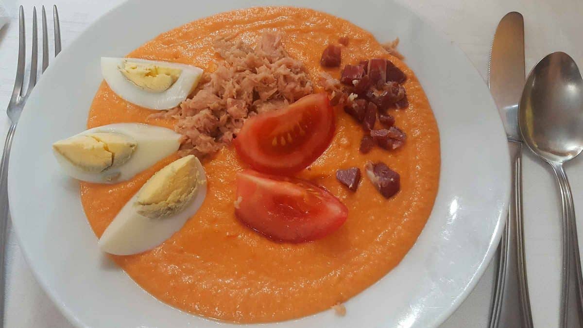 Este plato, muy cercano al gazpacho o al salmorejo cordobés por su similitud o por utilizar ingredientes similares (tomates, pan, aceite, sal, pimiento rojo, vinagre de vino blanco y ajos, junto a tacos de jamón o atún si se desea), es más desconocido que las otras versiones de sopa fría fuera de Andalucía.