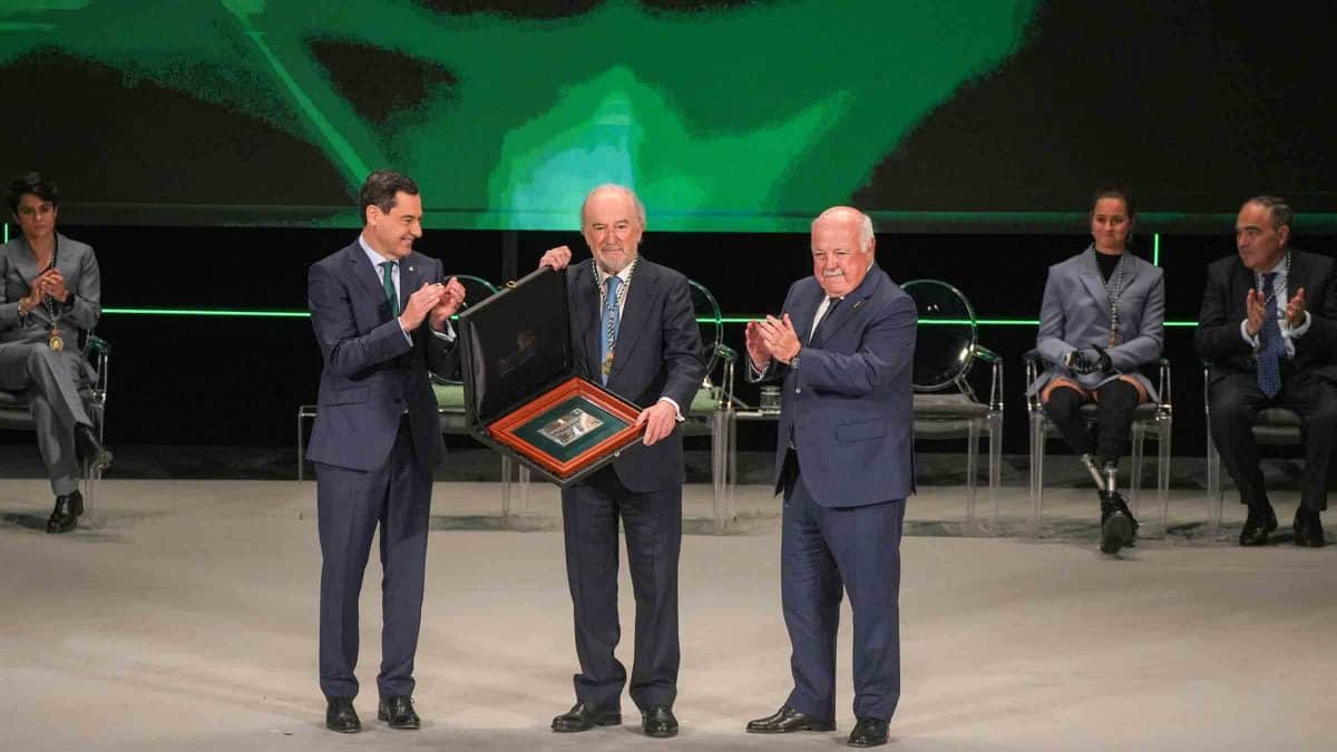 ‘El sueño de Andalucía’, espectáculo de Francisco Cuadrado, con Samara Valera al cante; Ángeles Velázquez al violín y On Dance Studio, como cuerpo de baile, ha antecedido a una de las entregas de medallas más sentidas de la gala, la Medalla a la Solidaridad y Concordia al presentador Juan y Medio. Dos parejas formadas en el programa ‘La Tarde, aquí y ahora‘ -Lola Redondo (83) y Antonio Reyes (86), y Loli Toro (82) y Beni Perales (83)- han puesto la nota de humor a la gala y uno de los momentos más emotivos al agradecer a Juan y Medio «la felicidad que nos has dado». Mientras Antonio enseñaba el «Te quiero, Lola» que se ha tatuado en un antebrazo, Loli Toro decía sobre su pareja Beni que «yo no le hago tatuajes, yo le hago arañazos», desatando la risa del público.