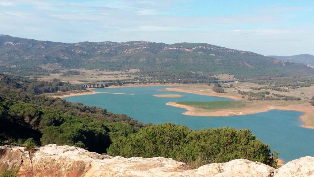 Lago sombreado por pinos y alcornoques, ideal para refrescarse. Su acceso es cómodo y está cerca de núcleos urbanos como Los Barrios o Algeciras.
