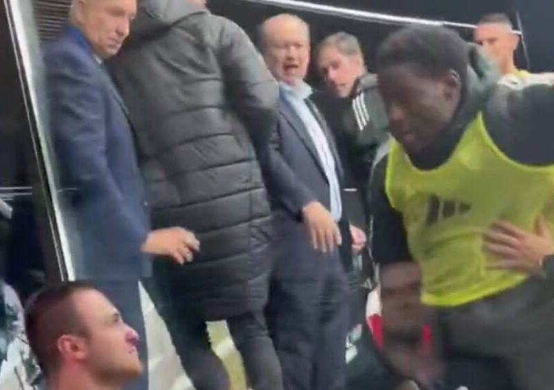 Pepe Castro y Agoumé se encaran con un aficionado de la Real Sociedad tras la derrota del Sevilla FC