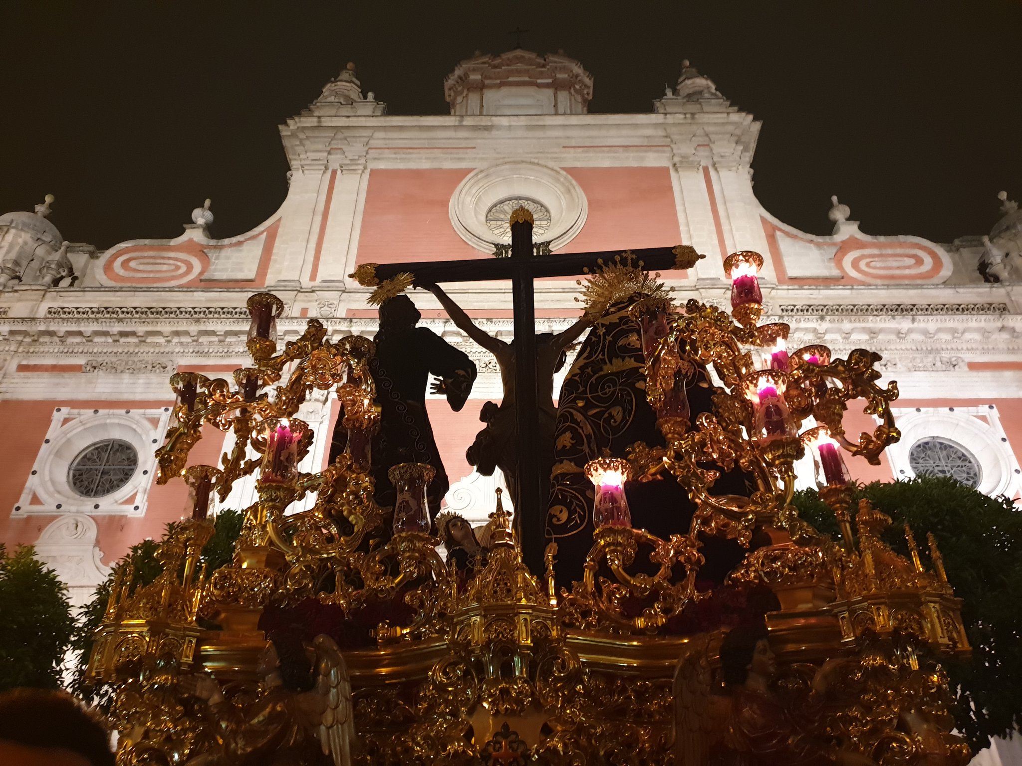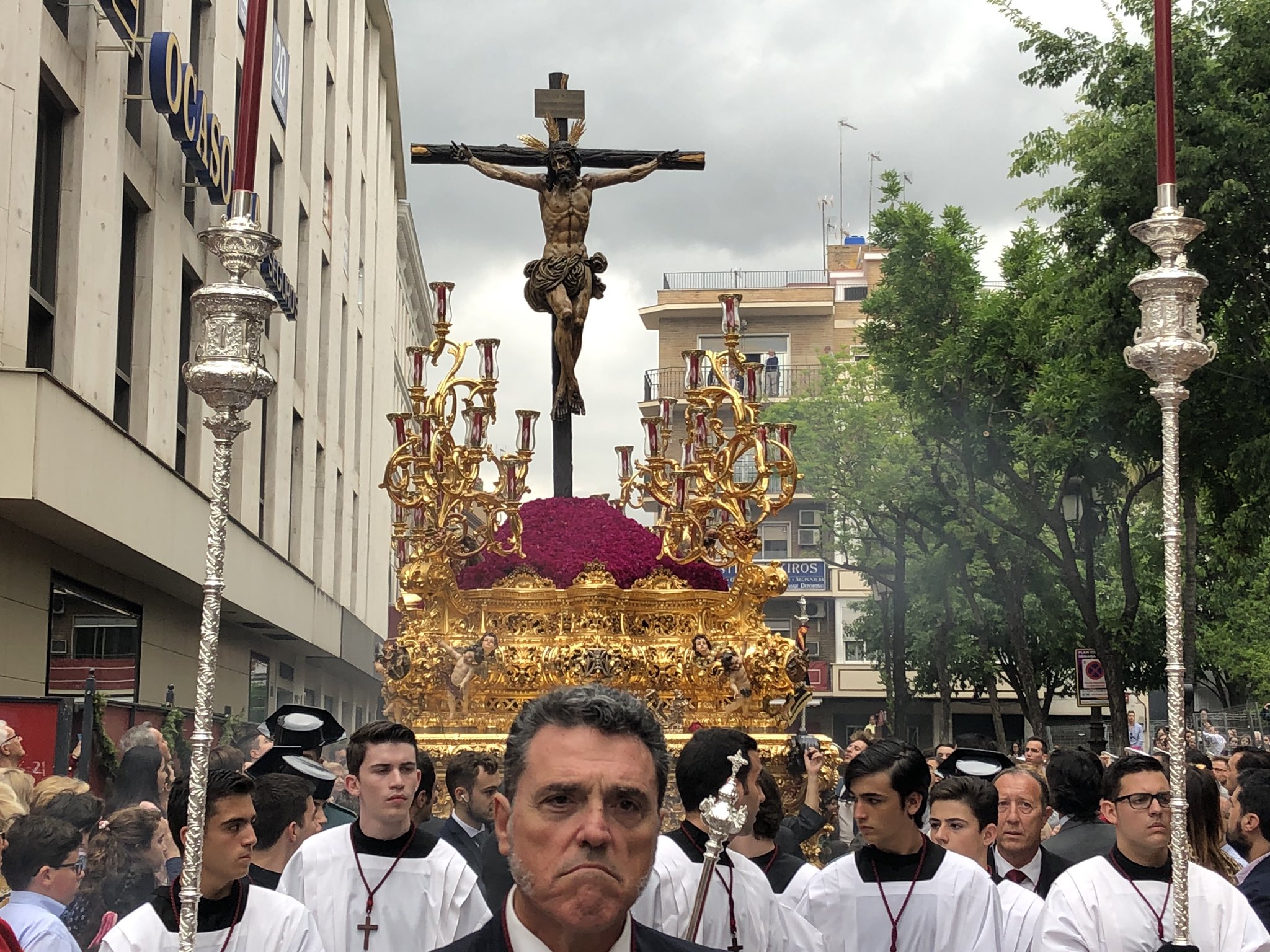 [12:15] Sale el Santísimo Cristo de la Sed de la parroquia de la Concepción para iniciar su recorrido este Miécoles Santo #CincuentenarioSed #HdadNervión19 pic.twitter.com/QW59w8E8wa