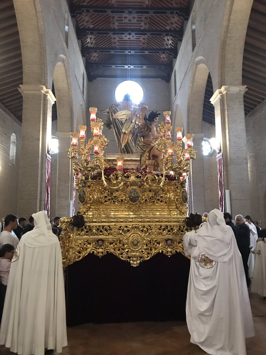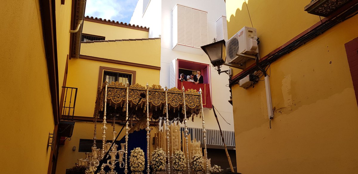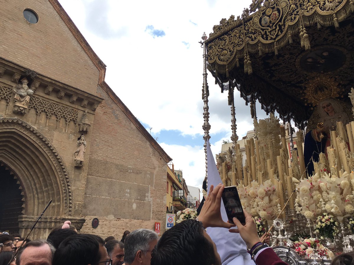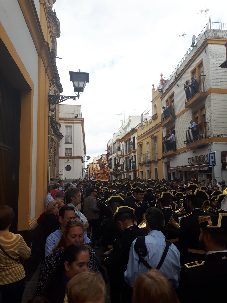 • Itinerario: Salida – Santa Marina (8:30h), San Luis – Inocentes (9:00h), San Blas – Infantes – Almirante Espinosa (9:30h), Plaza de Montesión – Feria- Conde de Torrejón (10:00h), Amor de Dios-Delgado-Trajano (10:30h), Plaza del Duque (11:00h), Campana – Sierpes (11:30h), Plaza – Avenida (12:00h), Catedral – V. Reyes – Cardenal Amigo (12:30h), Argote de Molina-Placentines (13:00h), Francos – Cuesta del Rosario (13:30h), Tres Caídas – Plaza de la Alfalfa – Odreros (14:00h), Sales y Ferré – Plaza Cristo de Burgos (14:30h), Santa Ángela de la Cruz (15:00h), Gerona – Dueñas (15:30h), Doña María Coronel – Bustos Tavera (16:00h), Plaza de San Marcos – San Luis (16:30h), Santa Marina (17:00h), Entrada (17:15h).