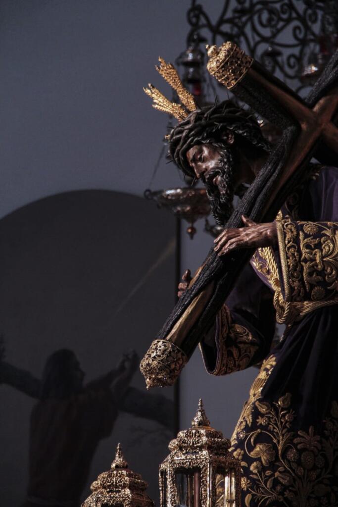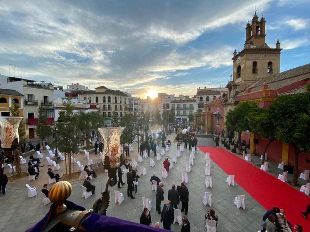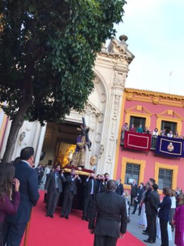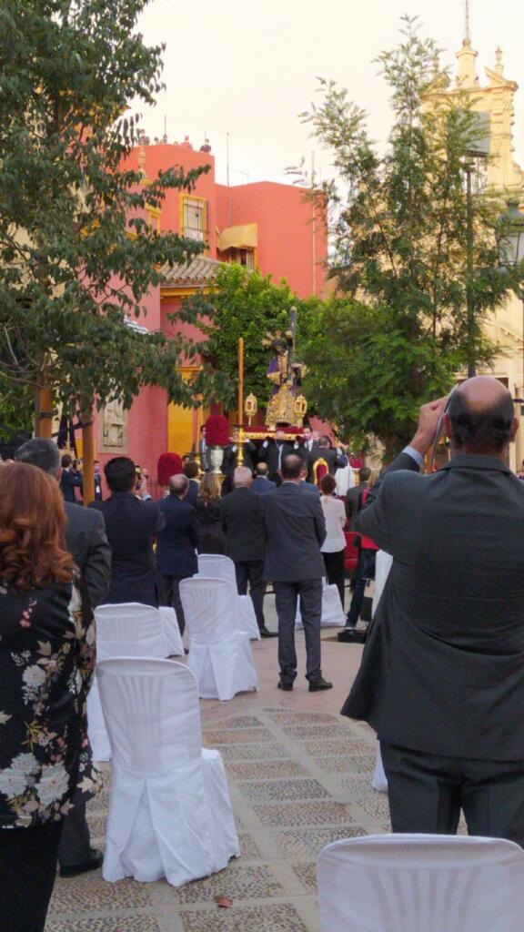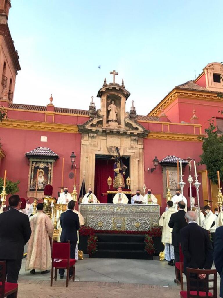 En la tarde de hoy se ha trasladado al Señor del Gran Poder a un altar instalado en la puerta de la Parroquia de San Lorenzo para celebrar la misa en conmemoración del IV centenario de su hechura.