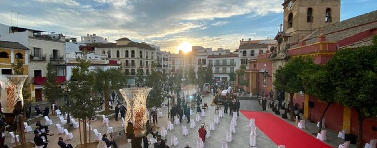 En la tarde de hoy se ha trasladado al Señor del Gran Poder a un altar instalado en la puerta de la Parroquia de San Lorenzo para celebrar la misa en conmemoración del IV centenario de su hechura.