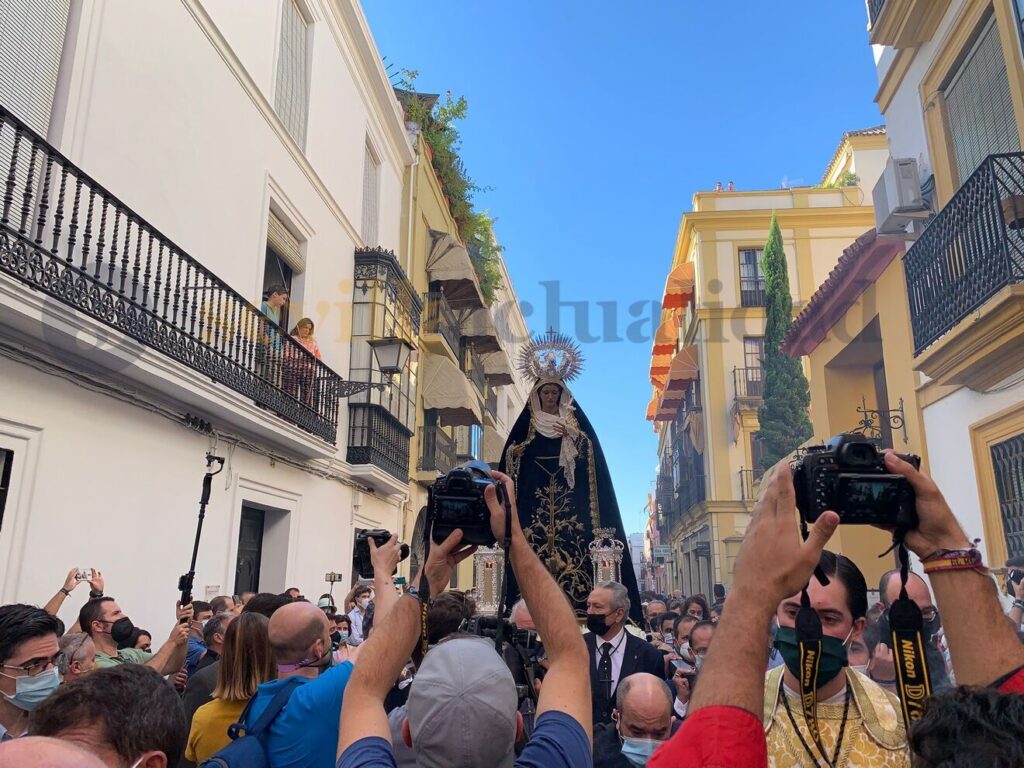 Virgen de las Tristezas de la Hermandad de la Vera Cruz en la primera salida procesional en las calles de Sevilla tras la pandemia / Miguel Salvatierra