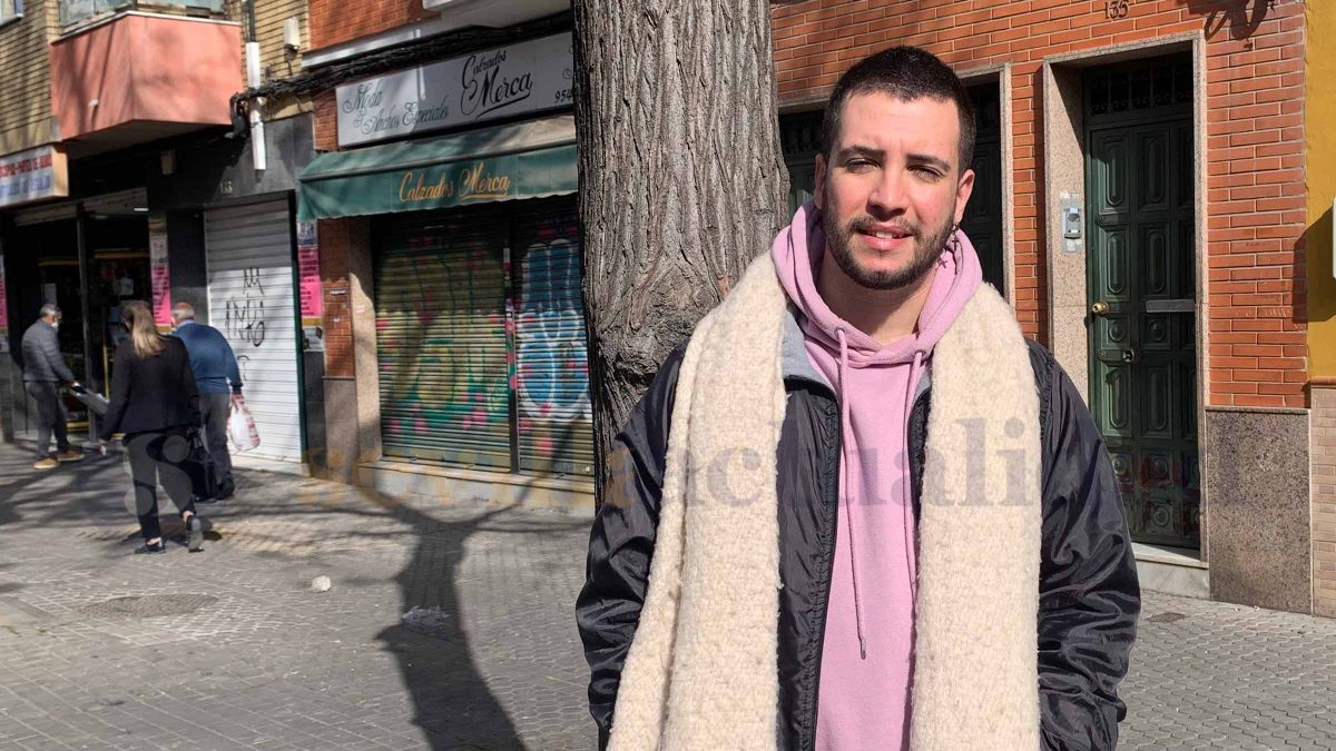 En ese grupo de jóvenes cofrades, que todos los años ve en el mismo lugar la salida de la cofradía del barrio del Cerro del Águila, se encuentra Ángel Alanís (1998, Sevilla), uno de los rostros que ha recorrido las televisiones, móviles y tablets de personas en toda España y fuera de nuestras fronteras.