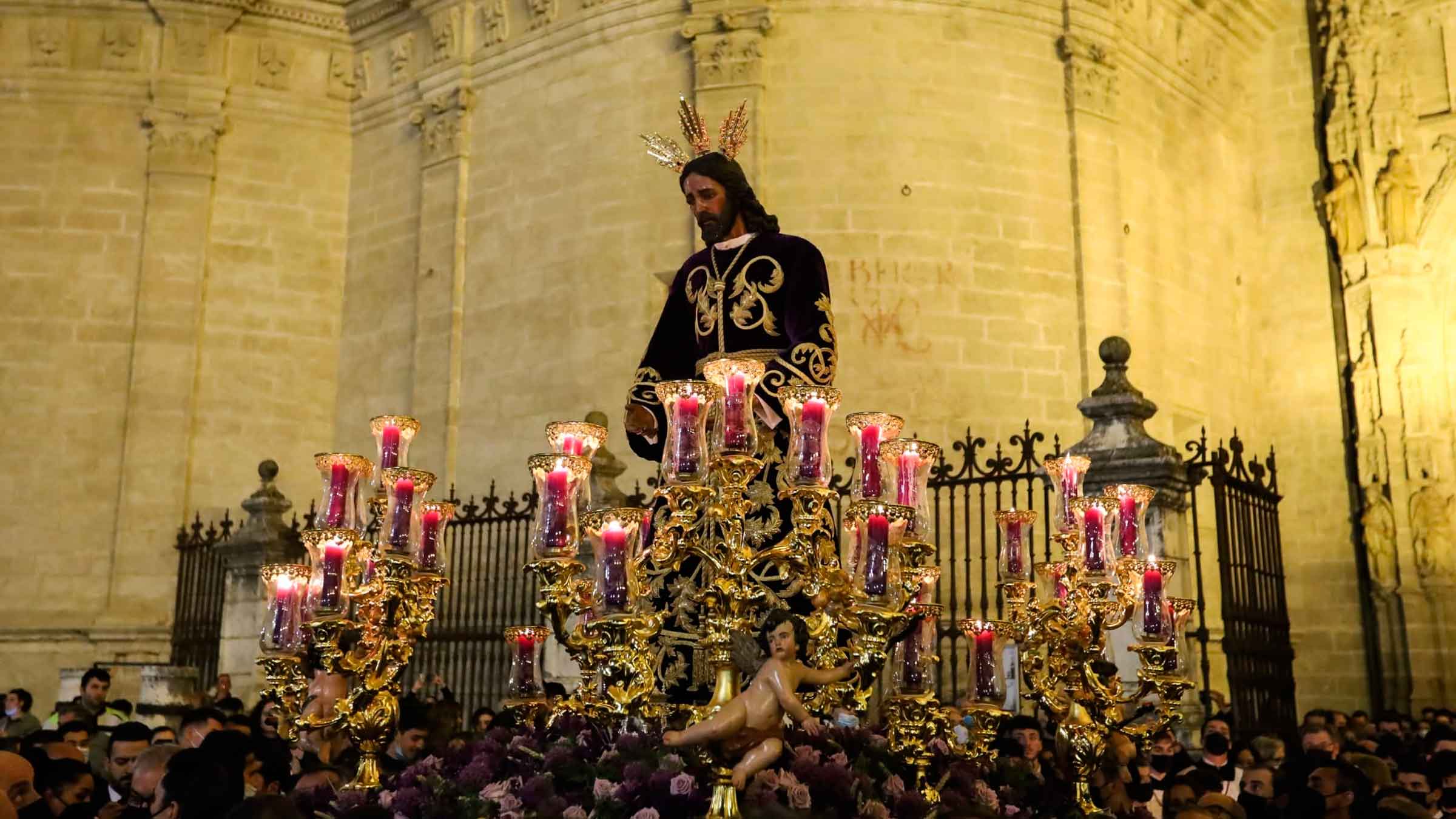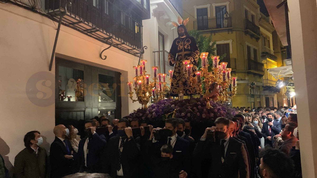 El titular de la hermandad de los Panaderos fue portado sobre las andas de la hermandad de los Gitanos, curiosamente donde fue portado el Cristo de la Salud en el año 2020, a escasos días del inicio del confinamiento. El Cristo del Soberano Poder portó la túnica de Rodríguez Ojeda, restaurada recientemente por el taller de José Antonio Grande de León, en una jornada en la que el frío y el inicio de la semana no impidieron que la imagen se viera arropada por el público cofrade hasta la misma entrada.