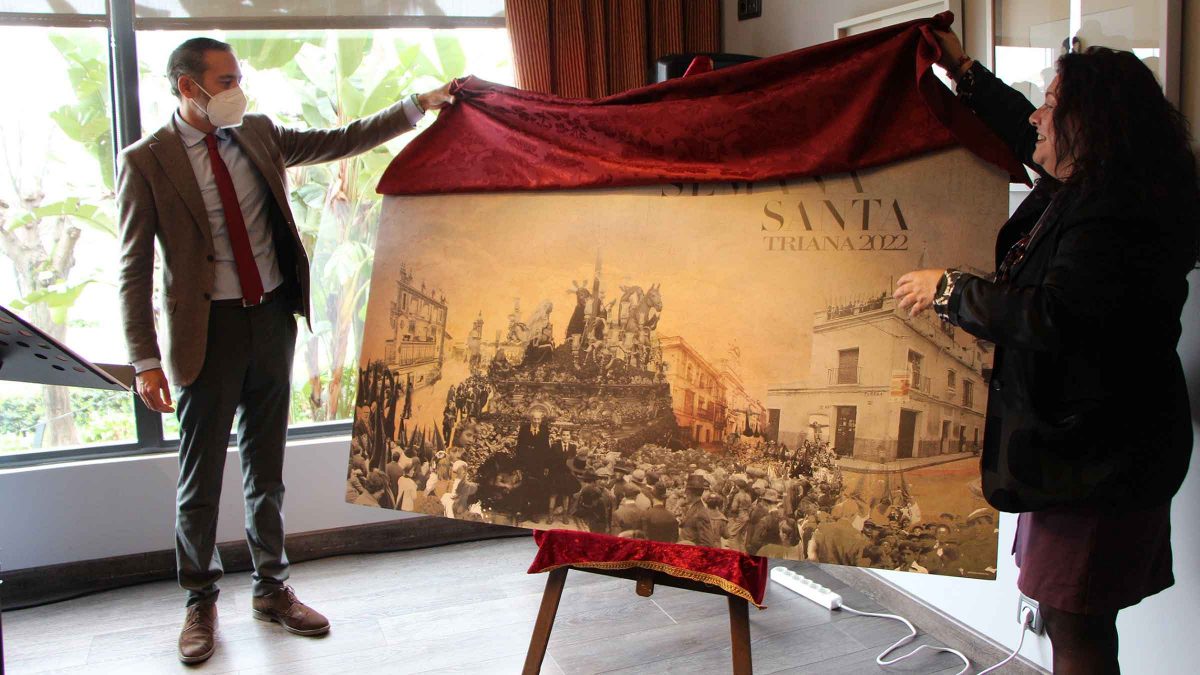 El Ayuntamiento de Sevilla, a través del Distrito Triana, ha presentado hoy el cartel de la Semana Santa de Triana de 2022, una obra gráfica del fotógrafo Santi León, que ha resultado ganador del concurso convocado por primera vez para este fin.