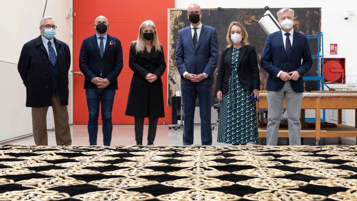El Instituto Andaluz del Patrimonio Histórico (IAPH) ha presentado el resultado de la restauración del manto procesional de la Virgen de los Dolores de la hermandad del Cerro del Águila, que volverá a lucir todo su esplendor el próximo Martes Santo tras una minuciosa intervención de cuatro meses en el taller de tejidos del Instituto.