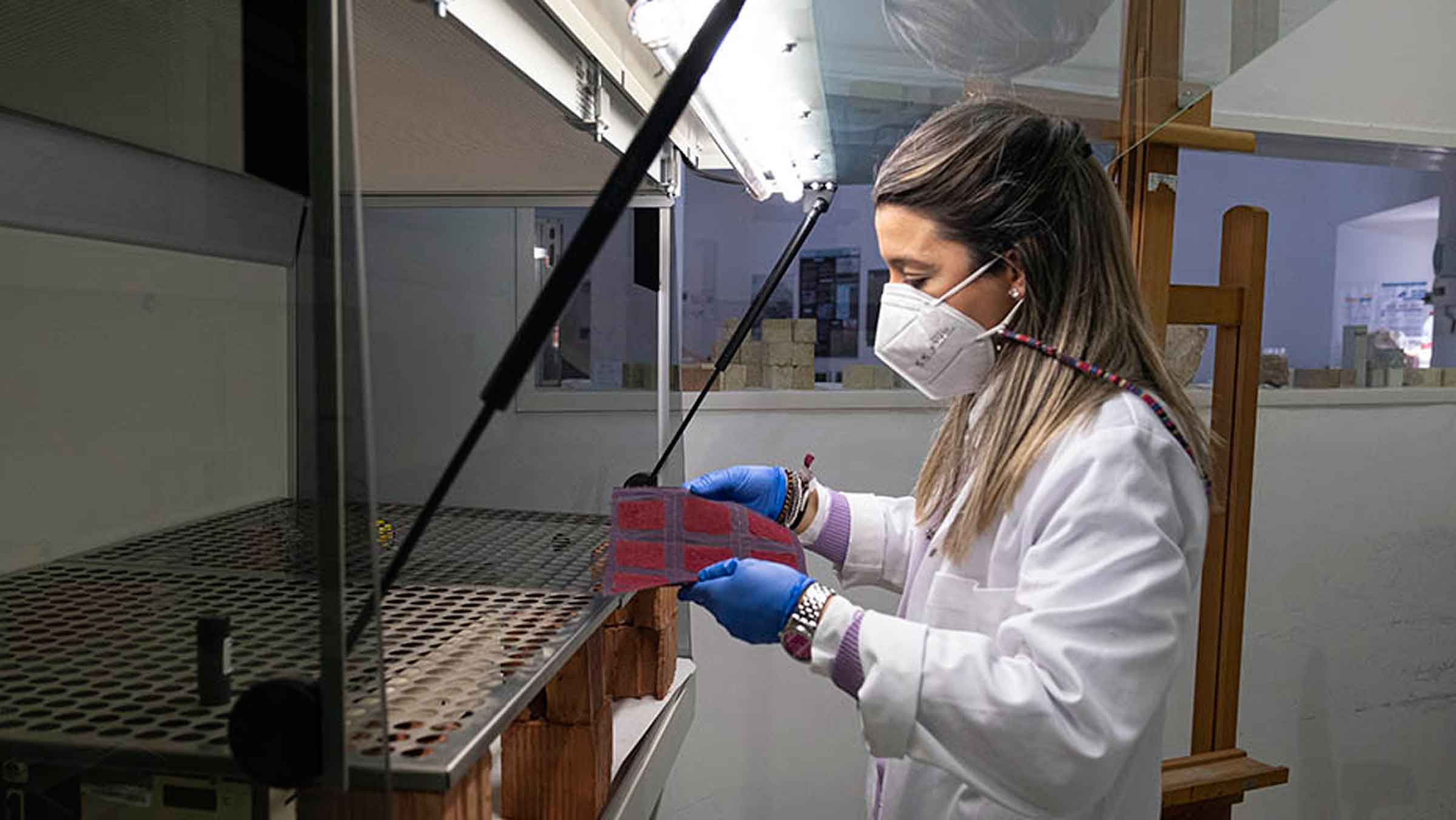 «En los laboratorios estamos sometiendo los materiales proporcionados por el taller de tejidos a una serie de experimentos de envejecimiento acelerado, es decir, a condiciones extremas de temperatura, humedad relativa y radiación ultravioleta, con el fin de estudiar y evaluar el comportamiento futuro», explica la ingeniera química Cristina García Garrido. «Queremos conocer la variación en propiedades físicas y mecánicas de estos materiales ‒el color o la resistencia a la tracción y el desgarro, por ejemplo‒ antes de intervenir en el palio», recalca Marta Sameño, directora de Investigación y Transferencia del IAPH.