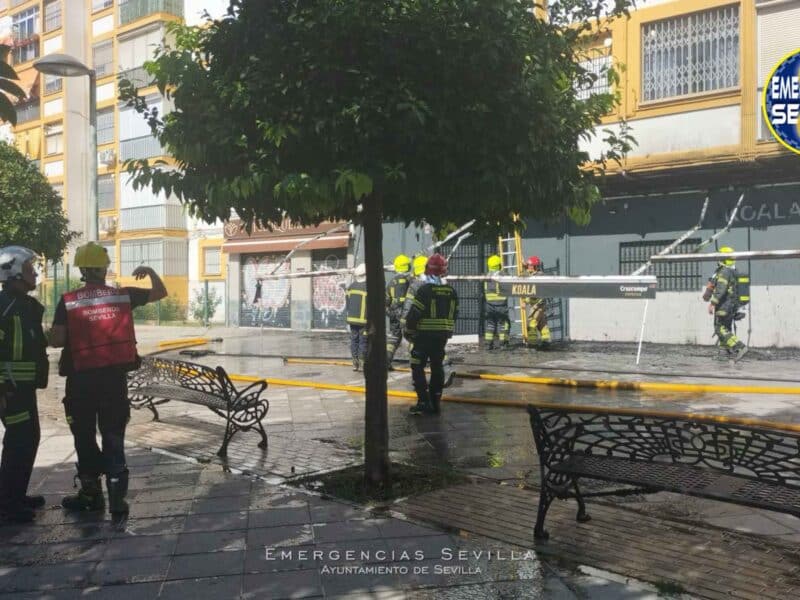 Susto en la Avenida Sánchez Pizjuán por el incendio del toldo de un bar