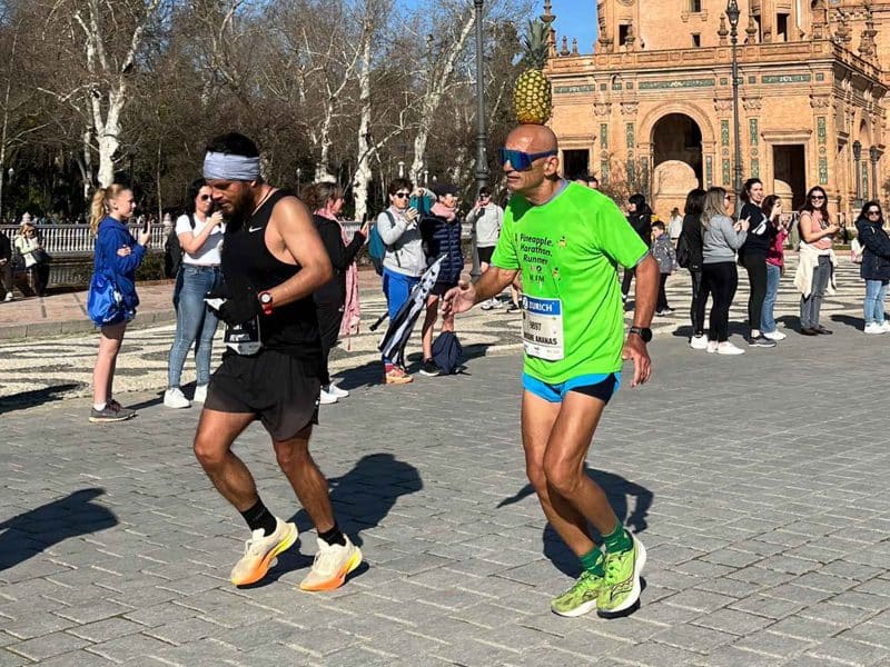 Acaba la Maratón de Sevilla con una piña en la cabeza