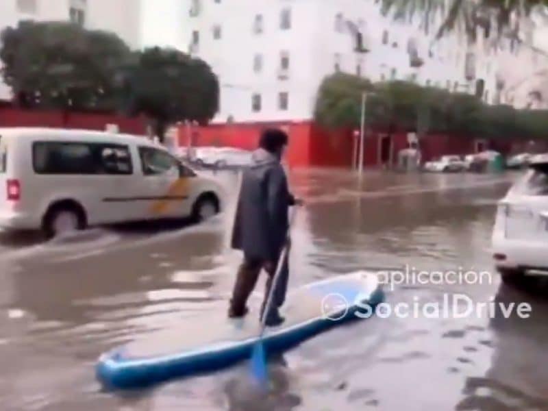 Aprovecha la arriada para hacer paddle surf en las carreteras de Triana