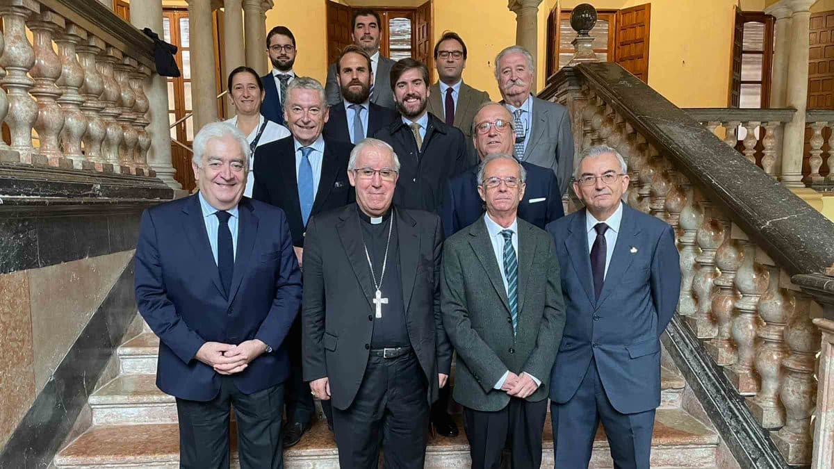 El Acto Eucarístico que organizan anualmente las Hermandades Sacramentales no fusionadas ha sido presentado este sábado al Excmo. y Rvdmo. Sr. Arzobispo de Sevilla, don José Ángel Saiz Meneses, durante la audiencia que concedió a la Junta de Gobierno de la Hermandad Sacramental de San Pedro, encabezada por su Hermano Mayor, Rafael Aguilar Cazorla, a los que acompañaron los delegados de Sacramentales del Consejo General de Hermandades y Cofradías, Antonio J. de la Fuente Mateos y José Joaquín León Morgado.