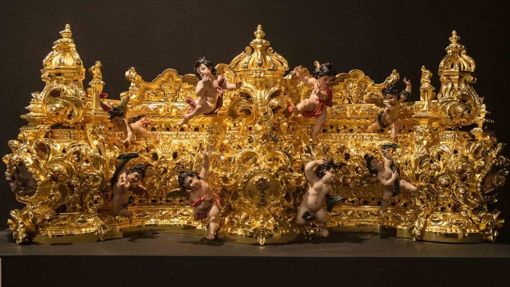 Esta pieza patrimonial recientemente restaurada se puede contemplar en la exposición de «Estrenos y Restauraciones de la Semana Santa de Sevilla 2023» en el Círculo Mercantil de la calle Sierpes.