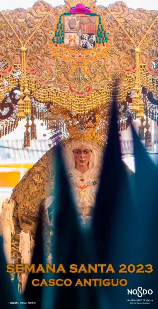 El Distrito Casco Antiguo ha presentado hoy su cartel anunciador de la Semana Santa de 2023. Se trata de una del fotógrafo e historiador del Arte Manuel Ramírez que muestra una imagen de la Virgen de la Esperanza Macarena durante la estación de penitencia del pasado año.