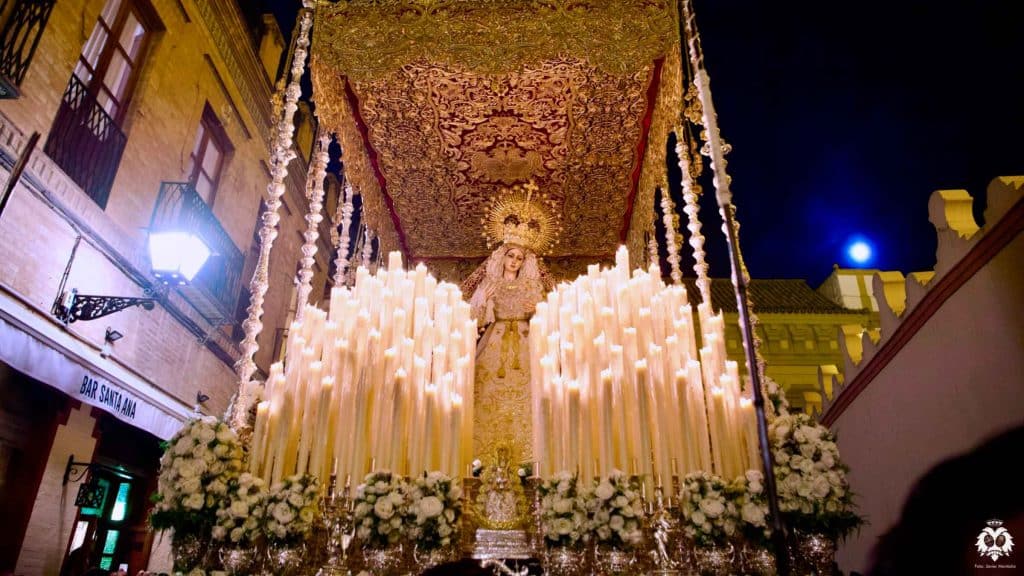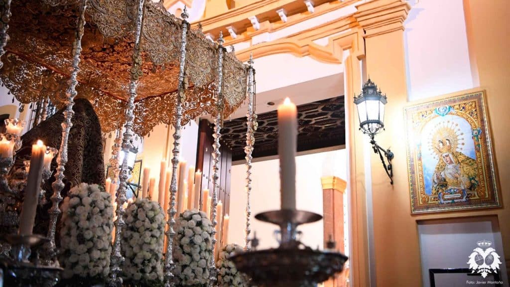 En lo que al paso de palio respecta, la hermandad optó, por primera vez, por la predominancia de las rosas blancas en el exorno floral y, además, estrenó los candelabros de cola, los cuales se han sometido en los últimos meses a un proceso de conservación en los talleres de Orfebrería Villarreal.
