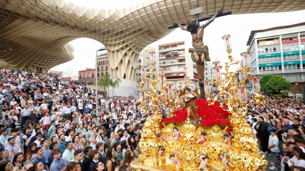 Itinerario: calle San Benito, Luis Montoto, Puerta de Carmona, Muro de los Navarros, Santiago, Juan de Mesa, Almirante Apodaca, plaza de San Pedro, Imagen, plaza de la Encarnación, Laraña, Orfila, Javier Lasso de la Vega, Trajano, plaza del Duque de la Victoria (lado este), CARRERA OFICIAL, Cardenal Carlos Amigo, Alemanes, Álvarez Quintero, Argote de Molina, Placentines, Francos, Cuesta del Rosario, Jesús de las Tres Caídas, calle Alfalfa, Águilas, plaza de Pilatos, calle San Esteban, Puerta de Carmona, Luis Montoto y calle San Benito.