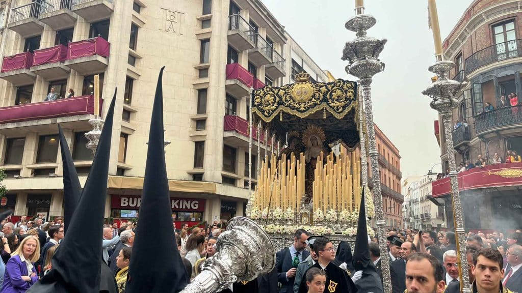 La lluvia ha destrozado el Domingo de Ramos este 2024 en Sevilla. Era algo que se preveía. La Agencia Estatal de Meteorología (Aemet) había activado el aviso amarillo por tormentas. La Hermandad de la Paz, la primera en salir en este día, se arriesgó con todos los pronósticos en contra. Incluso tuvo que cambiar el recorrido por el cierre del Parque de María Luisa.