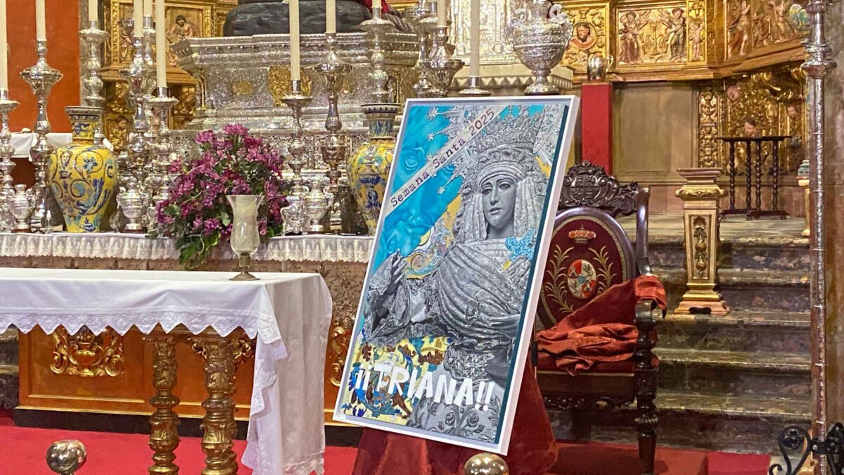 El Cristo de el Cachorro, que participará este año en la Gran Procesión de Roma, y la Esperanza de Triana protagonizan el cartel de la Semana Santa trianera de 2025. La obra ha sido presentada la tarde de este lunes en la parroquia de Santa Ana.