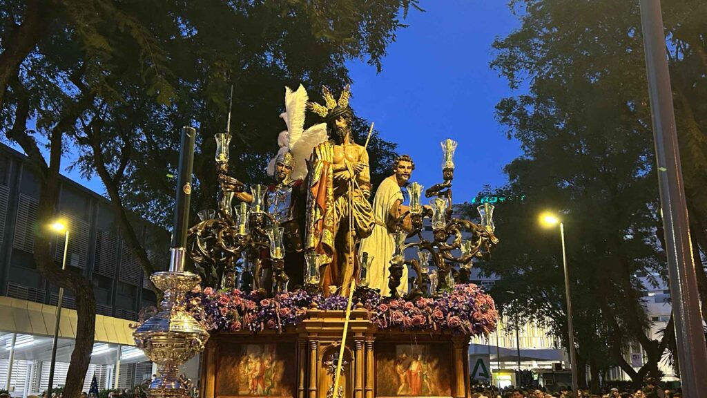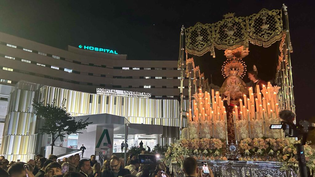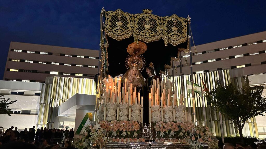 La procesión del Grupo de Fieles del Santo Lignum Crucis, Nuestro Padre Jesús de la Piedad, Nuestra Señora de la Salud y Esperanza y San Juan Evangelista recorrió este sábado las calles del barrio de Las Avenidas. Con una salida puntual desde la Plaza de Turmalina a las 16:30 horas, el cortejo avanzó por un itinerario que llevó a las imágenes por distintos puntos del barrio, incluyendo la Parroquia de Nuestra Señora de la Salud y el Hospital Virgen Macarena.