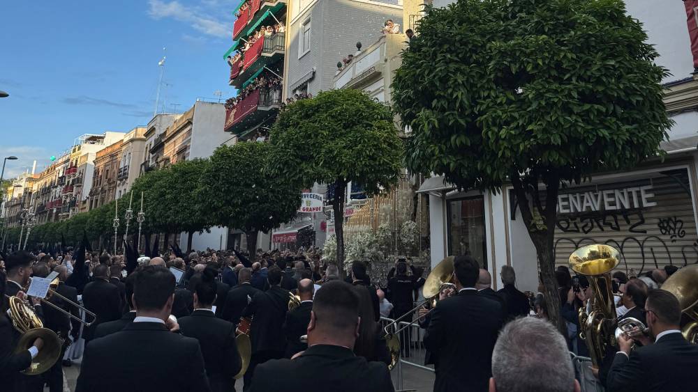 La Hermandad de la Amargura pospuso su salida media hora y salió a las 18:55 horas. La cofradía ya se encuentra en su totalidad en las calles de Sevilla.