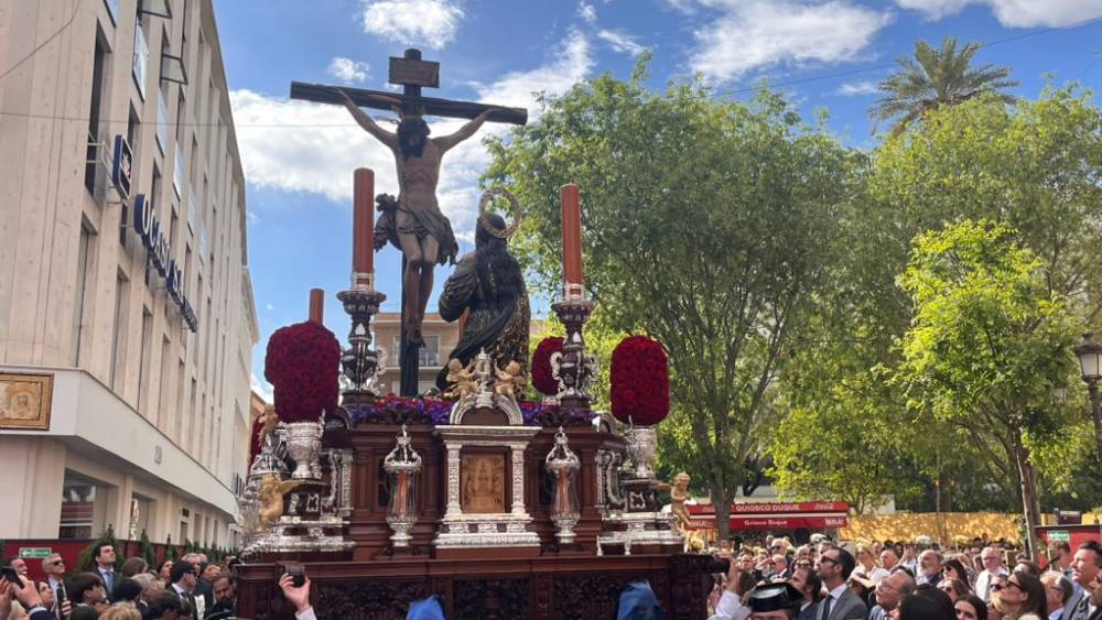 La Hermandad de la Hiniesta ha iniciado su estación de penitencia 13 minutos más tarde de lo previsto este Domingo de Ramos. El Cristo de la Buena Muerte está entrando en Carrera Oficial.